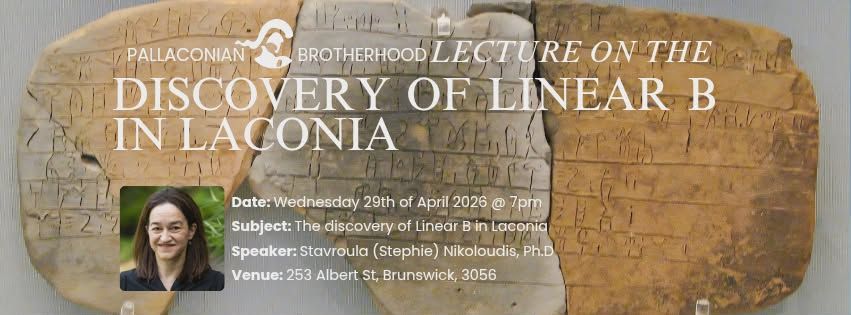The Pallaconian Brotherhood invites all to join us on Wednesday 29th of April at 7:00pm for a free lecture on the Discovery of Linear B in Laconia. Tea and cakes will be provided.